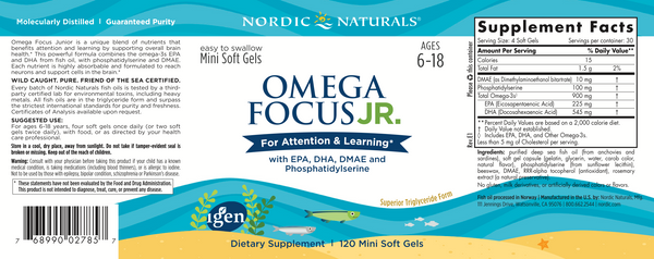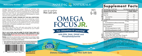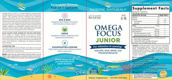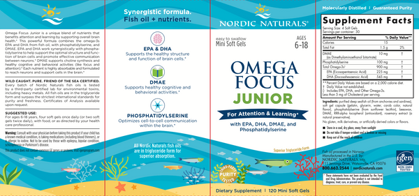 Omega鱼油注意力配方(青少年版)瓶身标签: