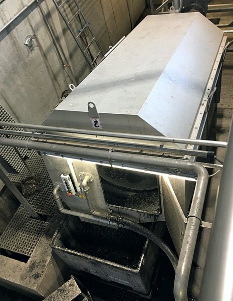 The quality of the effluent from the HUBER Complete Plant ROTAMAT® Ro5 is so good that it can be used directly as wash water supply for the HUBER Wash Drum RoSF9. The remaining wastewater is treated to clear water by the HUBER Dissolved Air Flotation Plant HDF at the end of the process. This clear water is reused as internal process water for the Grit Washer and the Complete Plant. In addition, Hammerer uses the clear water to refuel its suction vehicles. The disinfection plant ensures that the water is free of germs.