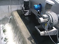 Other challenges during construction and installation were a consequence of the confined space at the pump station and of the fact that the pump station is located in a preferred residential neighbourhood. For this reason construction and installation work was subject to stringent constraints. Construction work finally commenced during January, 2007. We decided to install each RoDisc® unit in a concrete tank and to bury these tanks up to two thirds of their height below ground. In this way we could comply with the requirement that neither the filters nor their containers may be visible from the neighbourhood. On the other hand, with this design, we could guarantee easy access for operation and maintenance. The wire mesh on the filter discs are washed with spray water that is supplied from the filter tank to each filter by two high-pressure pumps.