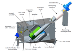 The HUBER Sludge Acceptance Plant ROTAMAT® Ro3 is designed and built as a packaged item of plant and like all HUBER products, is manufactured completely from stainless steel. It provides high removal efficiency, low head loss as well as longevity of service. The entire screening process takes place in a closed system avoiding odour annoyance, but the machines can be connected to odour control systems when required. The efficiency and rugged construction is able to cope with throughputs up to 230 m³/h. Compact construction, together with intelligent technology ensure reliable and continuous operation.