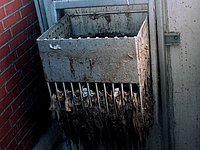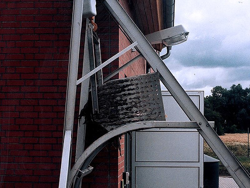 • 在上部排料时,导向轨道圆形弯曲, 可通过半自动方式将栅渣投入垃圾集装箱, 然后采用手工齿耙将剩余栅渣清空