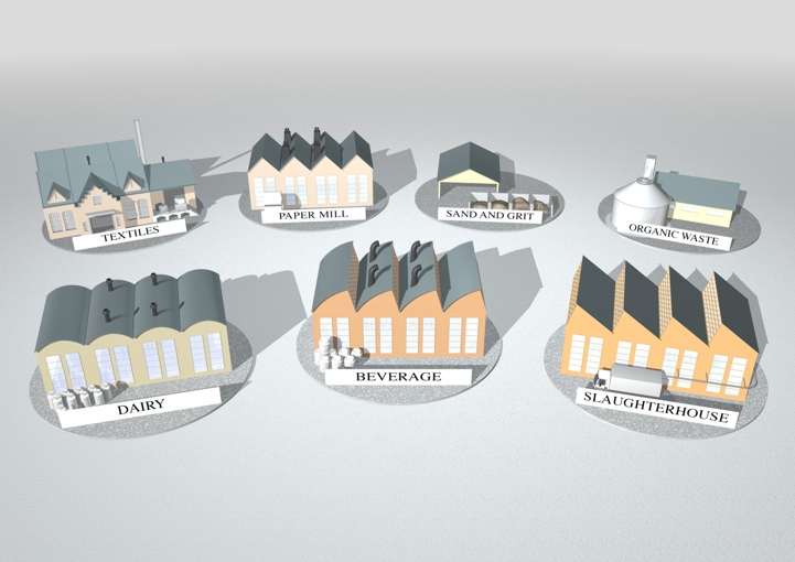pulp and paper industry textile and leather industry disposal industry / sand and grit slurry organic waste processing dairies / milk processing industry beverage industry and breweries slaughterhouse / meat processing industry