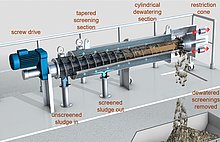 - Automatic pressure cone system for maximum dewatering efficiency and compaction of the separated material. Typical screenings are 40-50% DS, minimising disposal volumes.